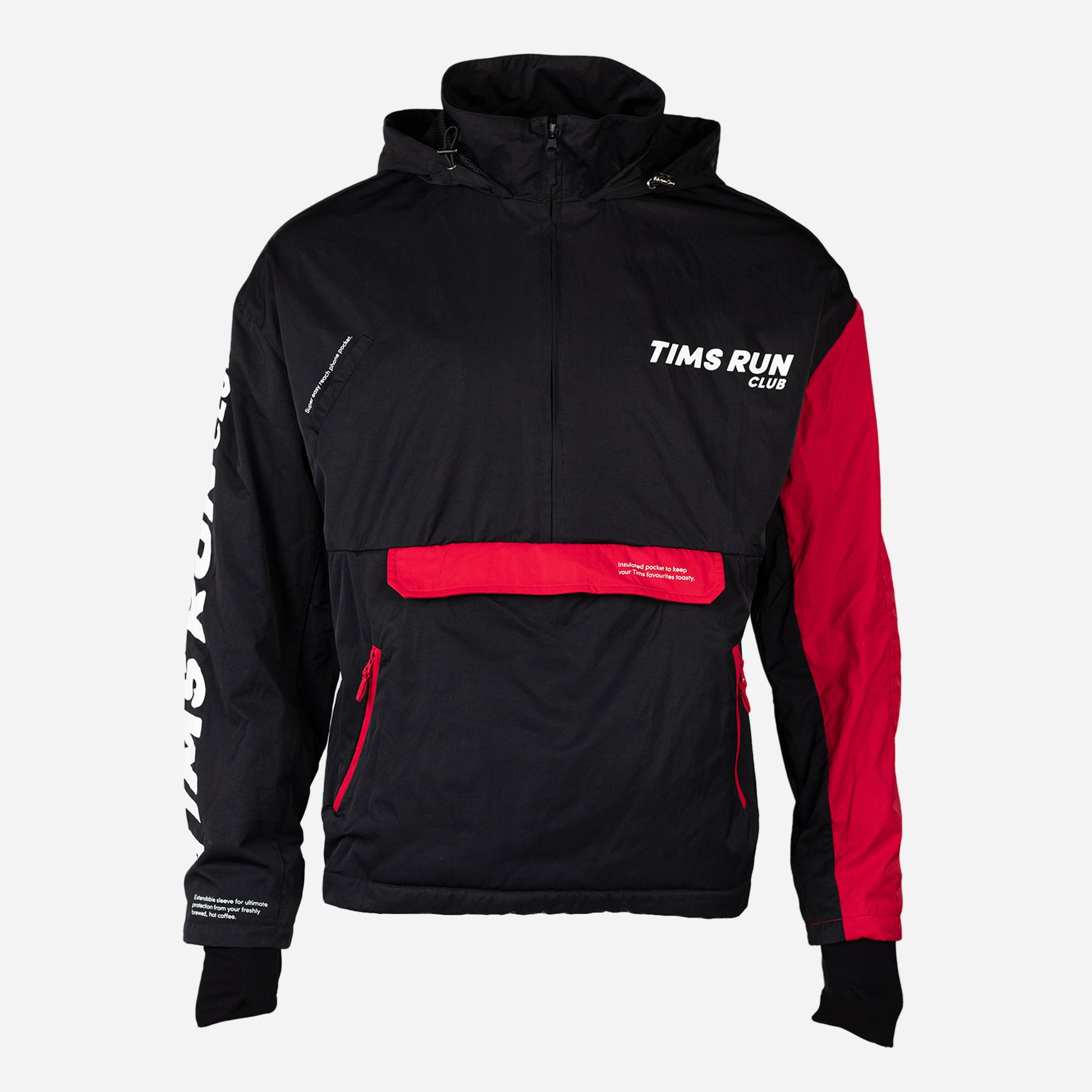 Ce coupe-vent en édition limitée est conçu pour faire de ta prochaine tournée chez Tim la mieux équipée de ta vie. Avec son rembourrage renforcé au niveau du coude pour t’assurer plus de confort au service au volant, sa manche gauche à double épaisseur offrant une protection supplémentaire contre les intempéries, sa poche centrale isolée qui garde ton Tim bien au chaud et sa poche pour téléphone super facile à atteindre, cette pièce offerte en édition limitée est vraiment à toute épreuve.